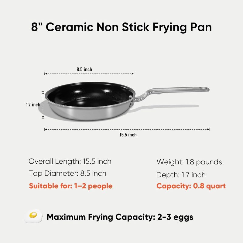 5-Ply Ceramic Non-Stick Frying Pans - 8-Inch Stainless Clad Nonstick Skillet, Professional Cookware Induction, All Stoves And Oven