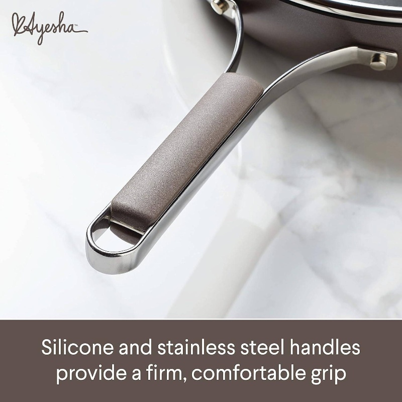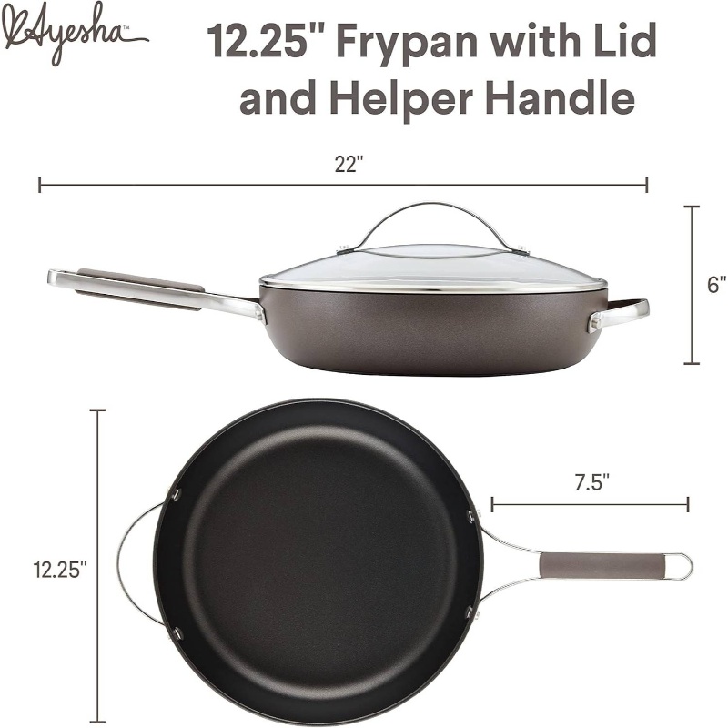 Curry Kitchenware 80293 Professional Hard Anodized Nonstick Deep Frying Pan\u002FSkillet with Lid And Helper Handle, 12.25 Inch - Charcoal Color