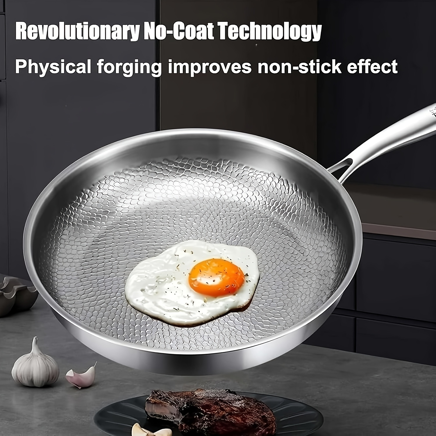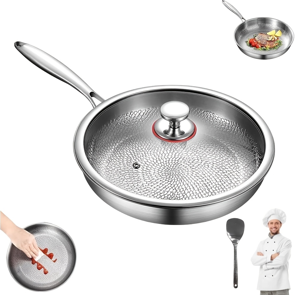 High-end Hammer-patterned Titanium Golden Frying Pan with Lid, Multiple Specifications Of Titanium Golden Hammer-patterned Frying Pan with Lid, Upgraded Non-coated And Non-stick Titanium Golden Professional Kitchenware, Super Durable