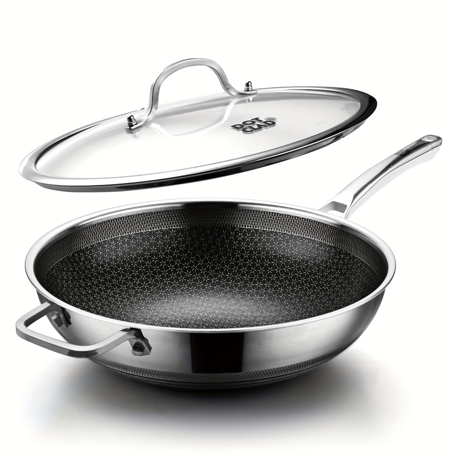 Hybrid 13-Inch Wok with Lid, Pfoa-Free Cookware, Non-Stick Stainless Steel Woks And Stir-Fry Pans, Safe for Dishwasher And Oven, Compatible with Induction Cooking